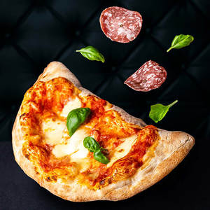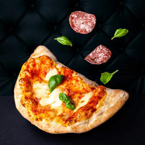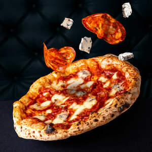 pomidory pelati, mozzarella fior di latte, grana padano, salami picante, gorgonzola DOP