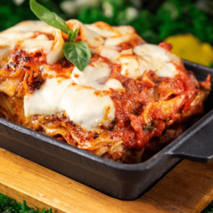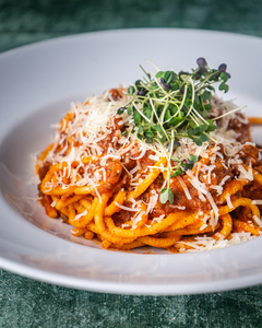 z włoskimi pomidorami pelati, mięsem wieprzowym, warzywami, oliwą extra virgine, oregano i serem Grana Padano