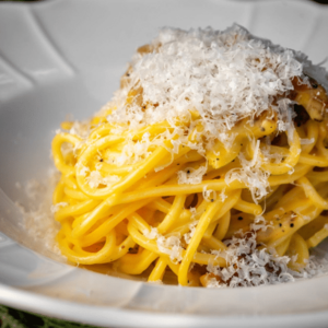 policzek wieprzowy Guanciale, żółtko, pecorino Romano, grana padano