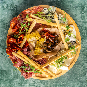 mozzarella fior di latte, grana padano, mortadela, pesto pistacjowe, burratą, kruszone pistacje