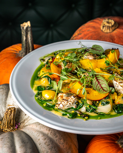 mozzarella di bufala, pecorino romano, gorgonzola Dop, tymianek, orzech włoski, oliwa truflowa